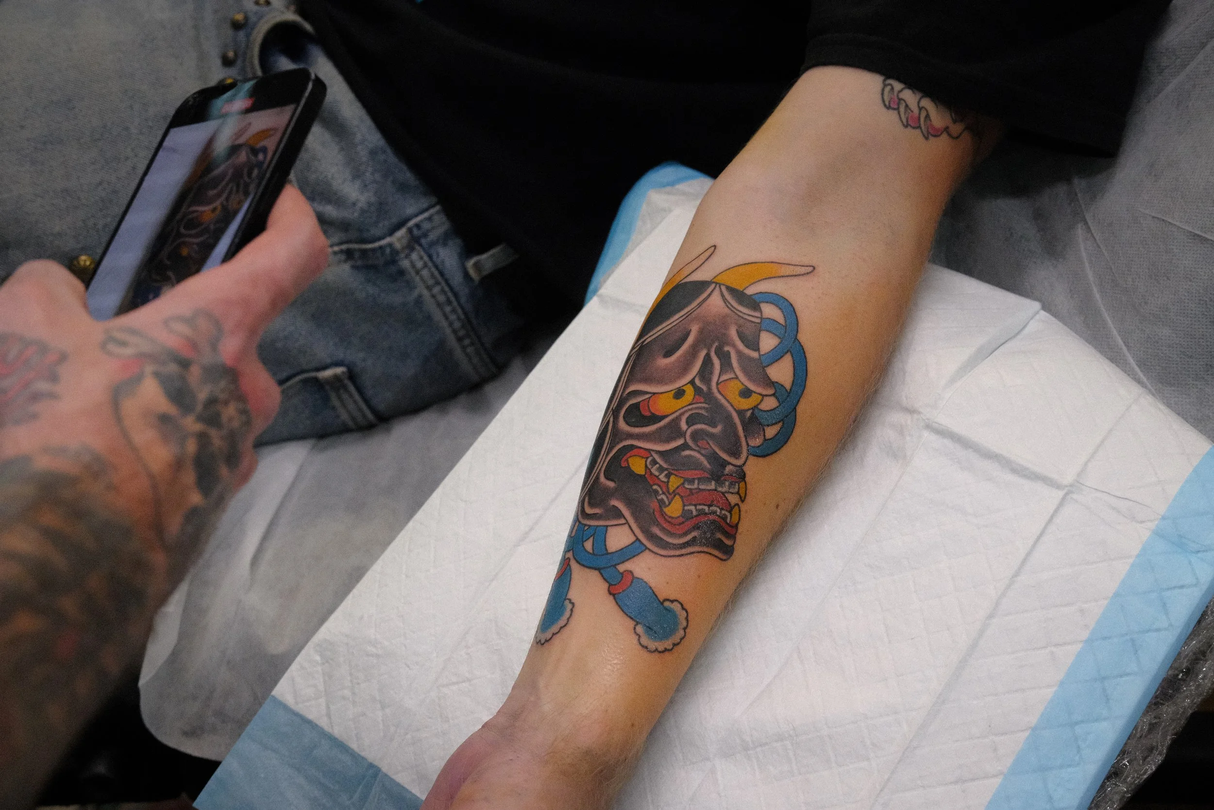 Hannya mask tattooed by Oliver West on Josh today. Oliver is now taking bookings for May onwards. To book an appointment or to organise a consultation, call the Tatt Co on 03 9602 2555 or send through an enquiry!